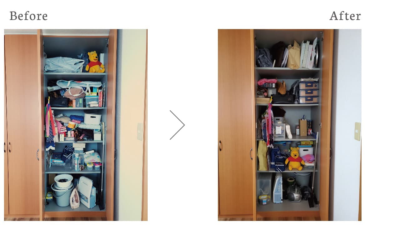 奥様と息子さんの物、季節外の物を収納。ここにあった今使わない物は、物置へ移動